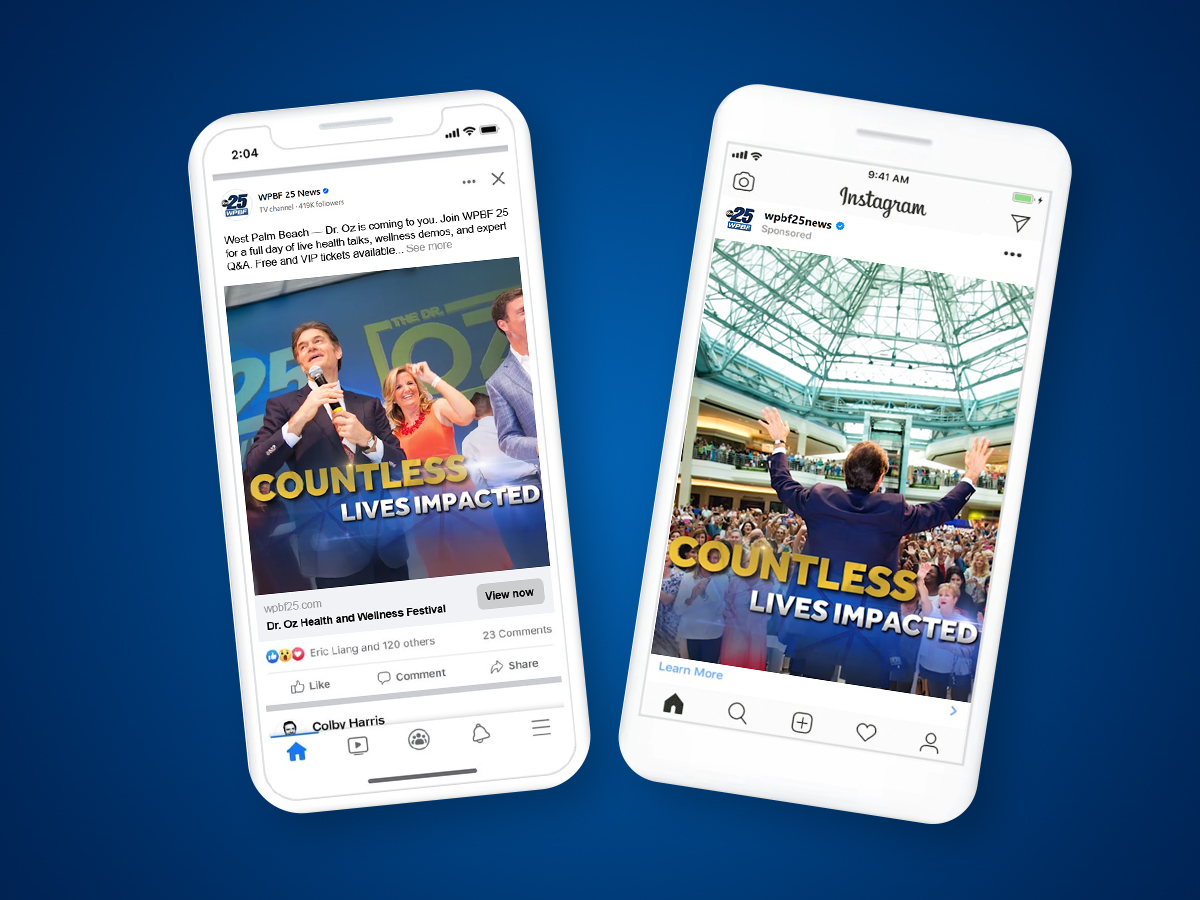 WPBF 25 partnered with Dr. Oz to bring a large-scale Health and Wellness Festival to South Florida — and needed a full social campaign to sell it out. I led the creative direction and campaign execution across paid Meta placements, email, and organic social, building a cohesive promotional identity from the ground up and driving ticket sales through performance-optimized content at every stage of the funnel.